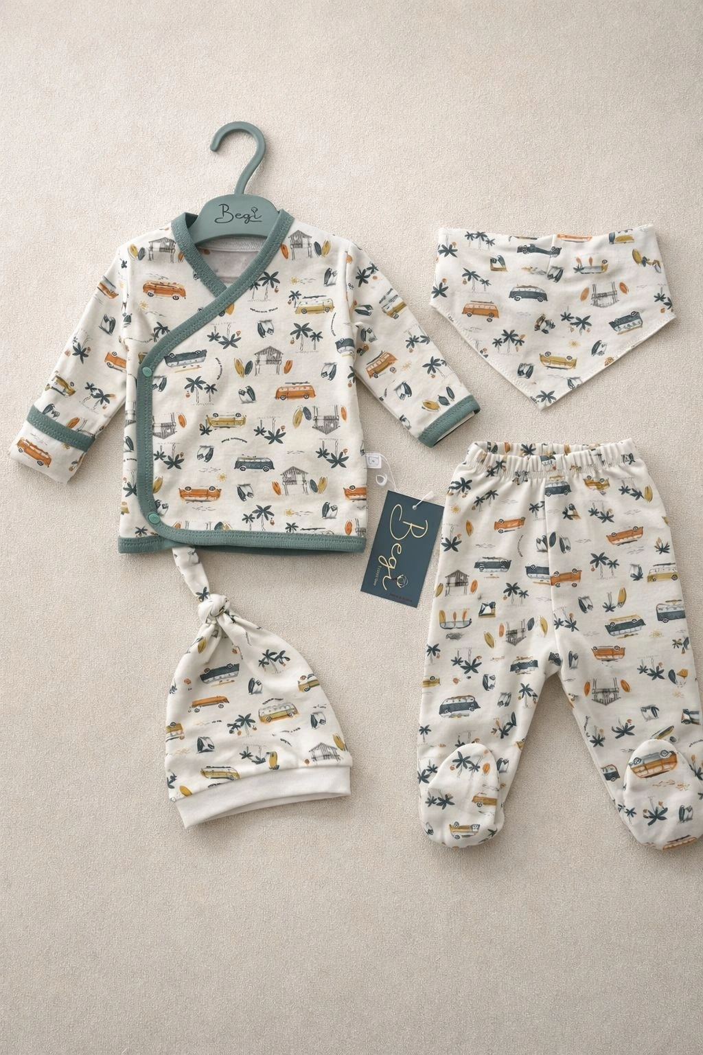 Begi 5'li Araba Desenli Hastane Çıkışı %100 Pamuk