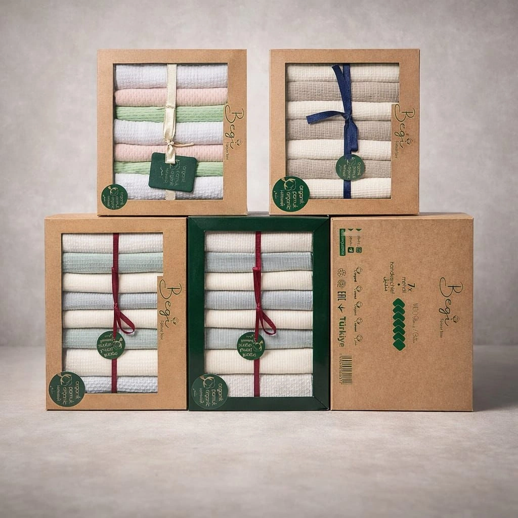 Ölçü: 7 Adet Tarçın Renkli 28x28 CM ve 7 Adet Çift Katlı Bebek Ağız-Ter Mendili