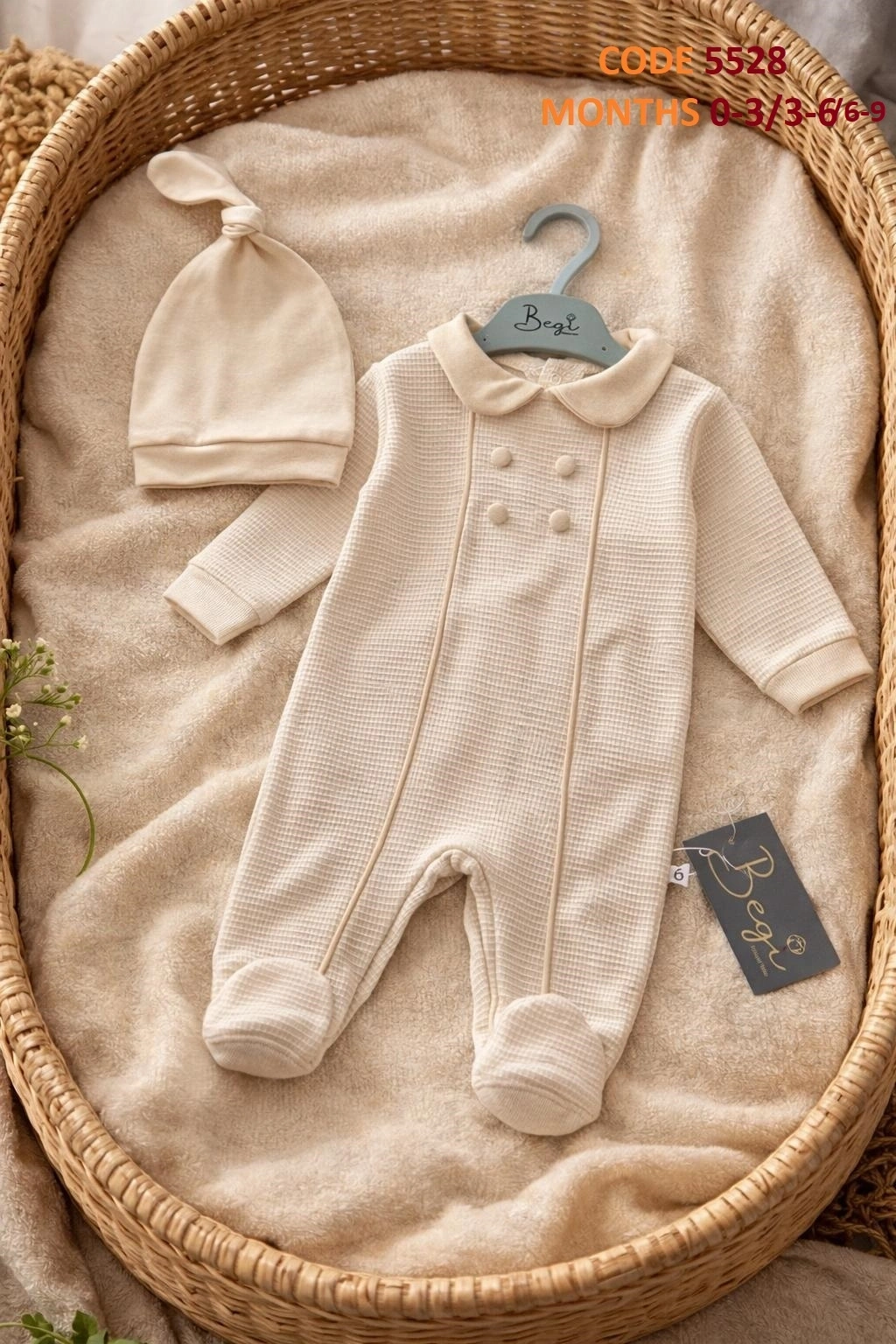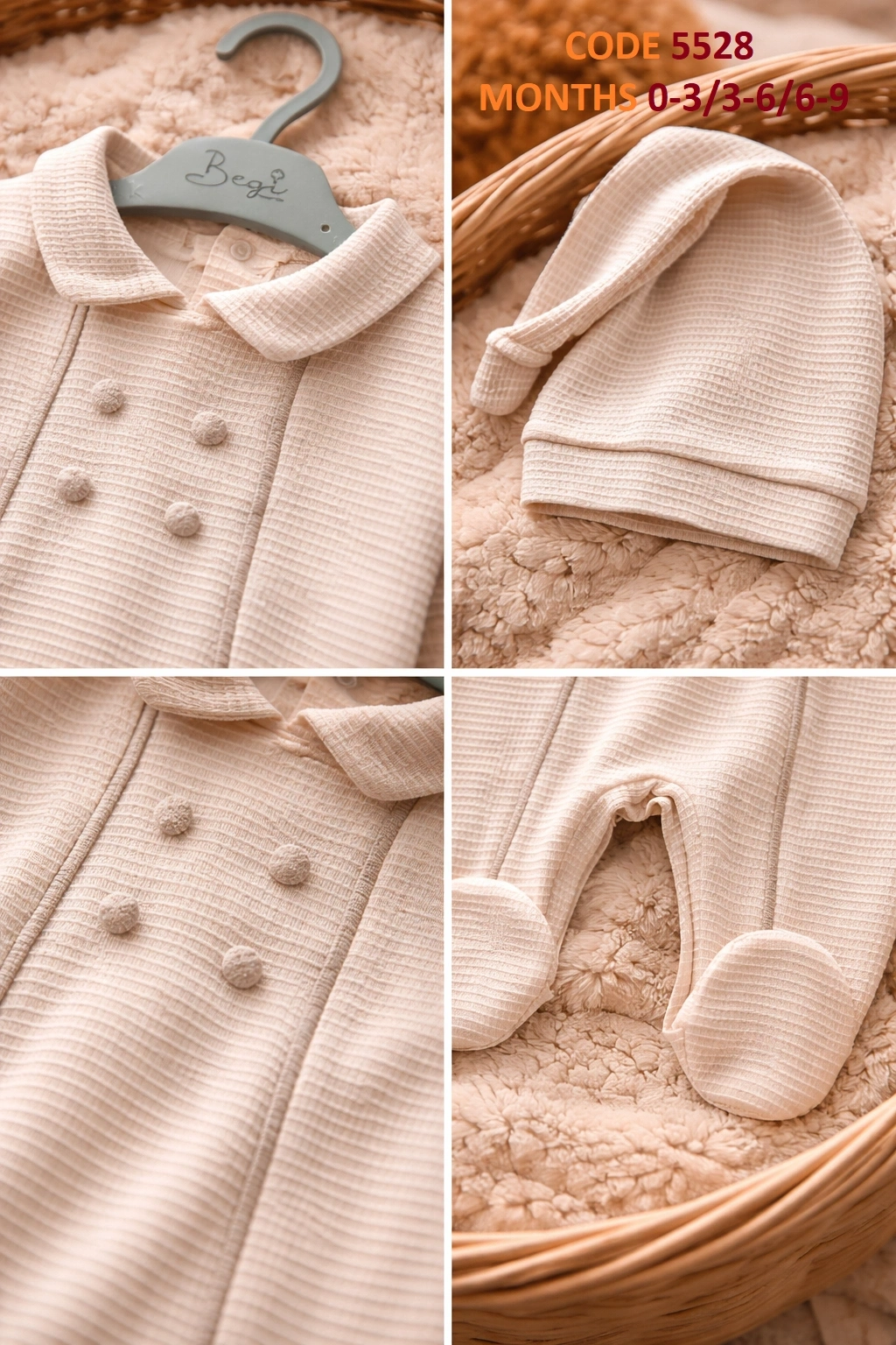 Begi Arabiyeli 4 Düğmeli %100 Pamuk Şapkalı Tulum