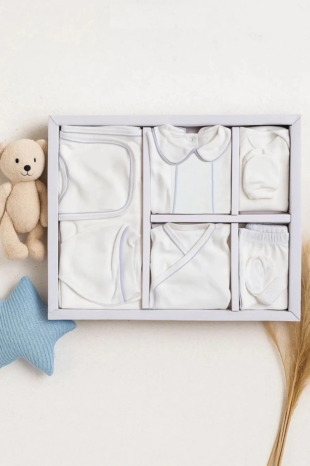 •  Çizgi Desenli 10 Parça Kutulu Erkek Bebek Hastane Çıkış Seti