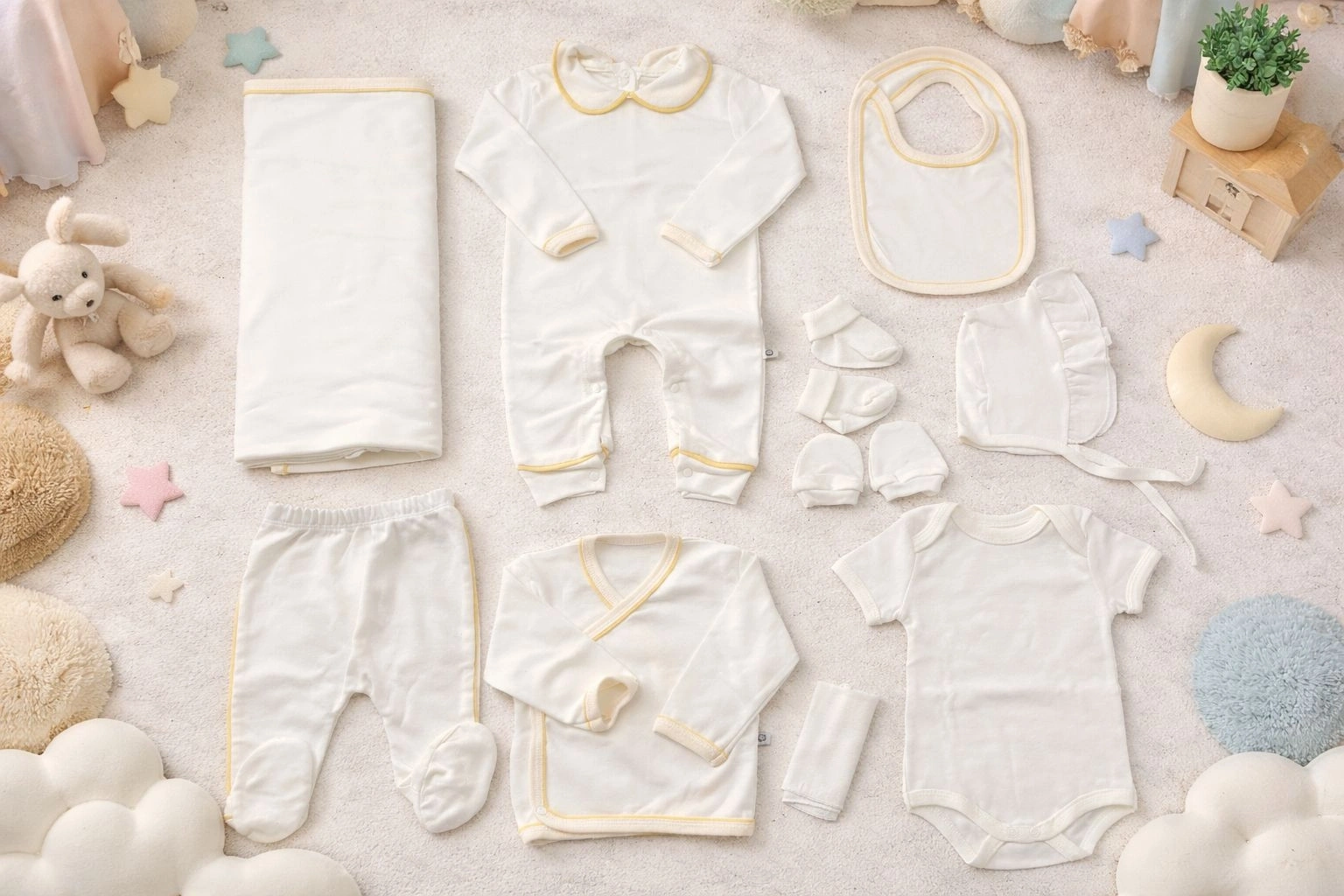 Bu şık kutulu set, bebeğinizin hastane çıkışı ve ilk günlerinde ihtiyacınız olan her şeyi bir arada sunar. Hem kendi bebeğiniz için hem de sevdiklerinize hediye etmek için mükemmel bir seçimdir. ?