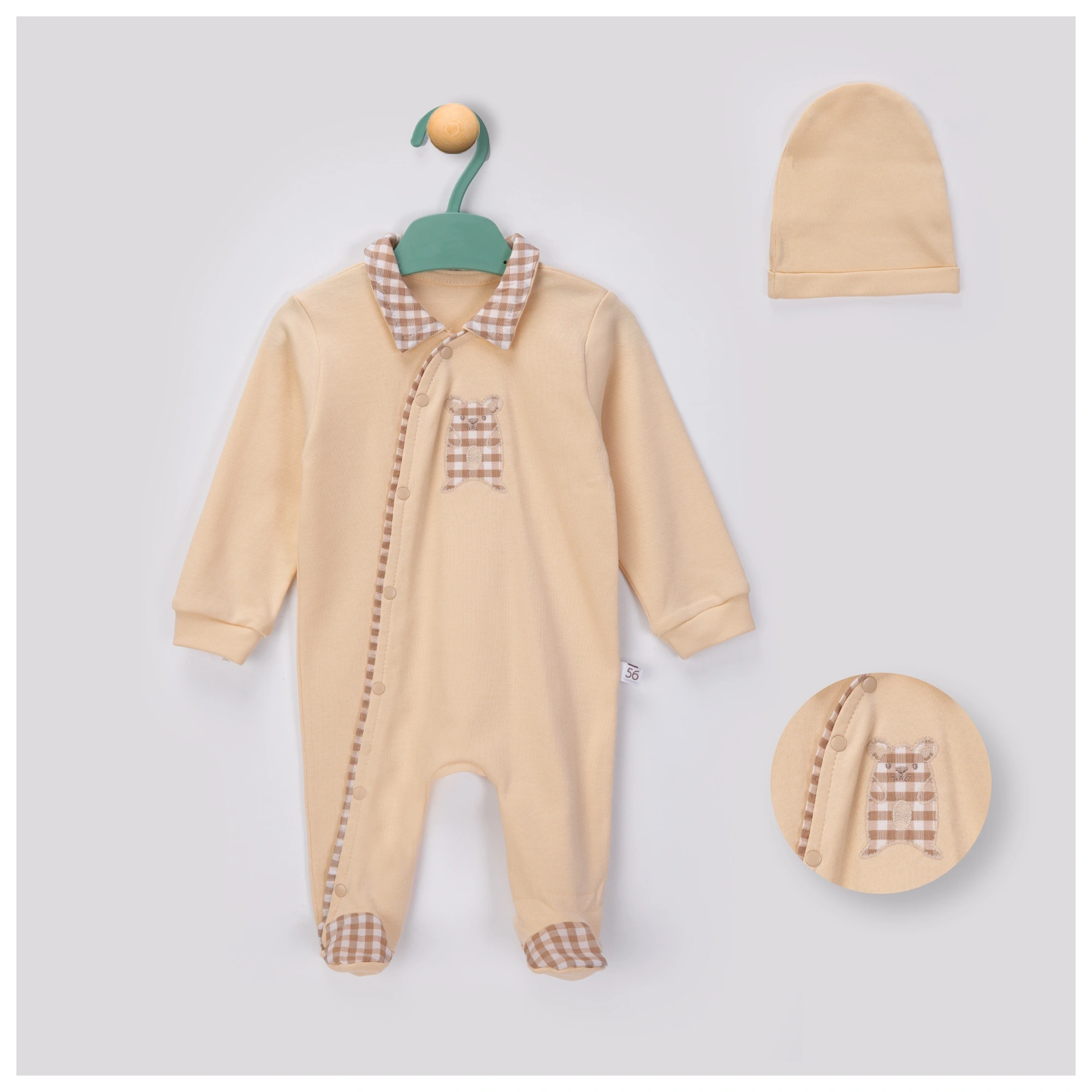 Begi Arabiyeli 4 Düğmeli %100 Pamuk Şapkalı Tulum